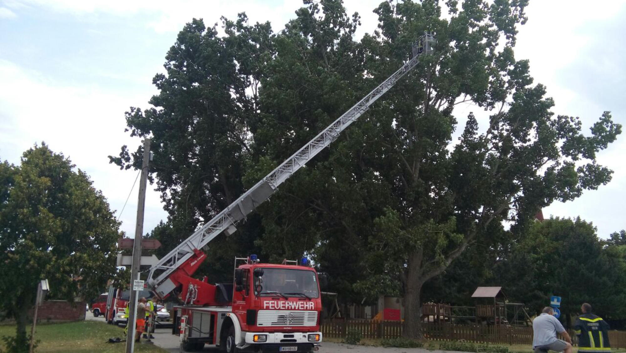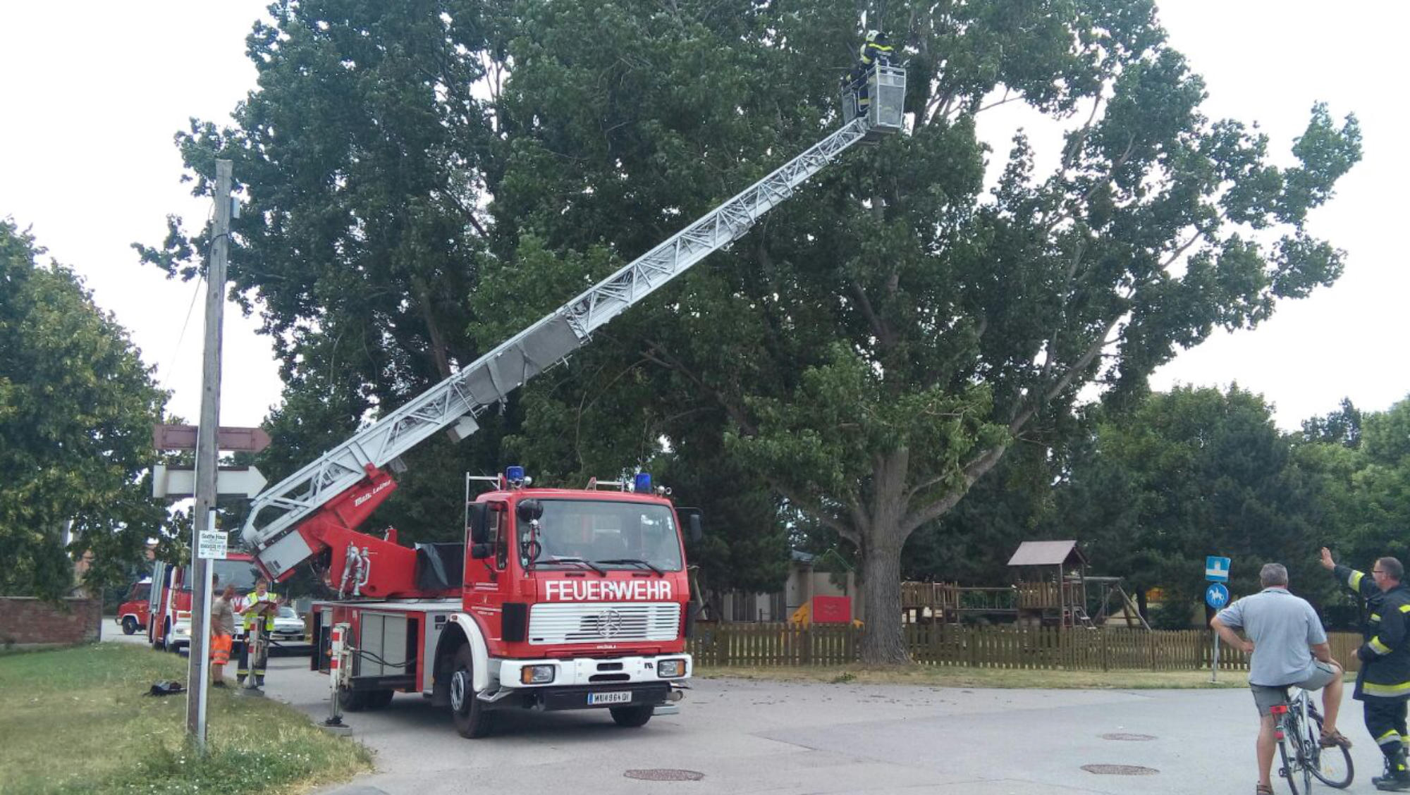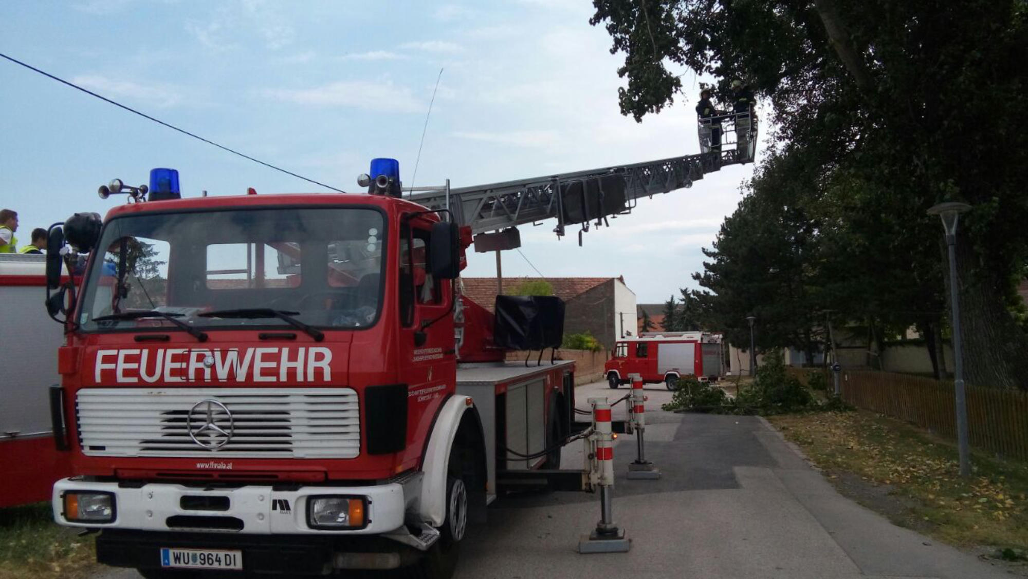Morsche Äste mittles Drehleiter der Feuerwehr Ma. Lanzendorf entfernt (mit Feuerwehr Ma. Lanzendf.) |