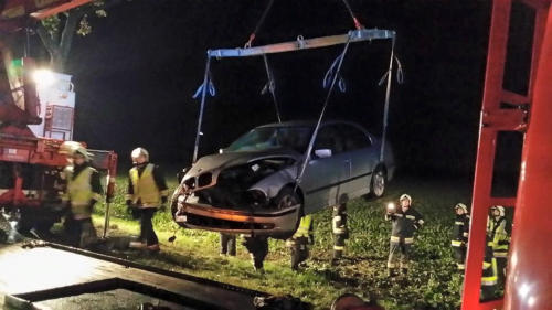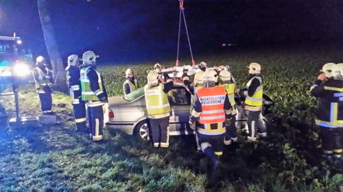 PKW wegen Schneeverwehungen in Graben geschlittert, mit TLF aus Strassengraben gezogen |