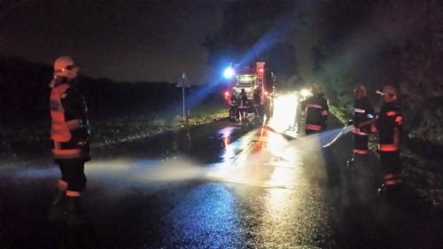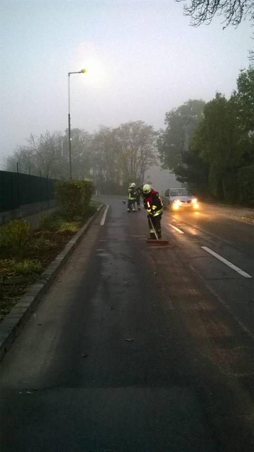 Nach Kfz-Unfall wurde die Ölspur gebunden, Fahrzeug wurde mit Hilfe des Hebekissen geborgen |