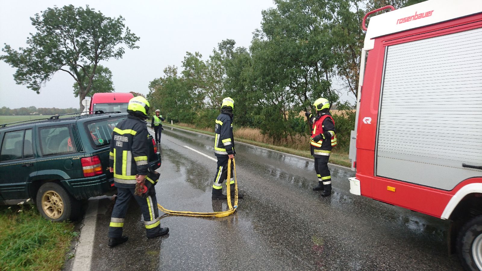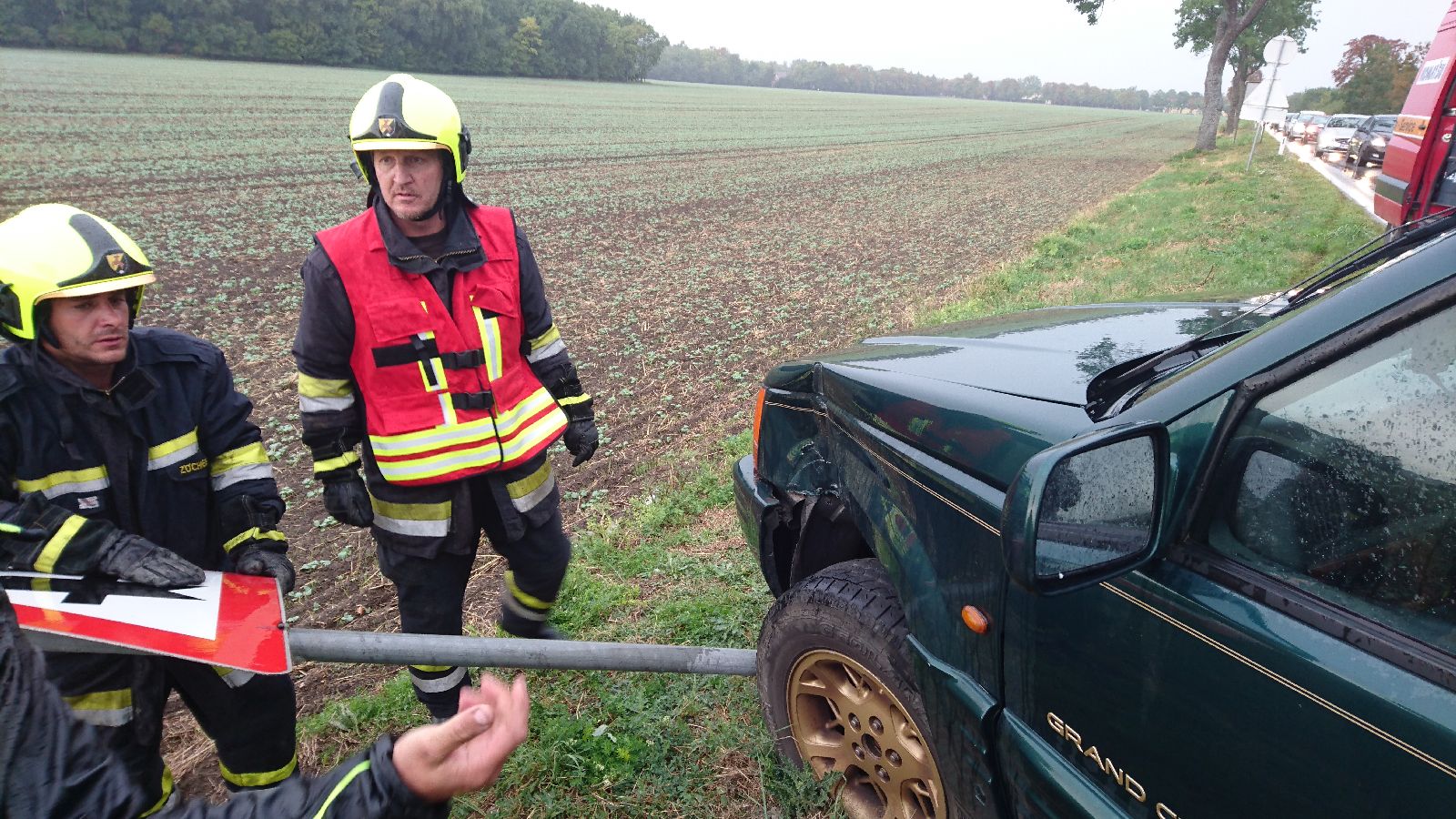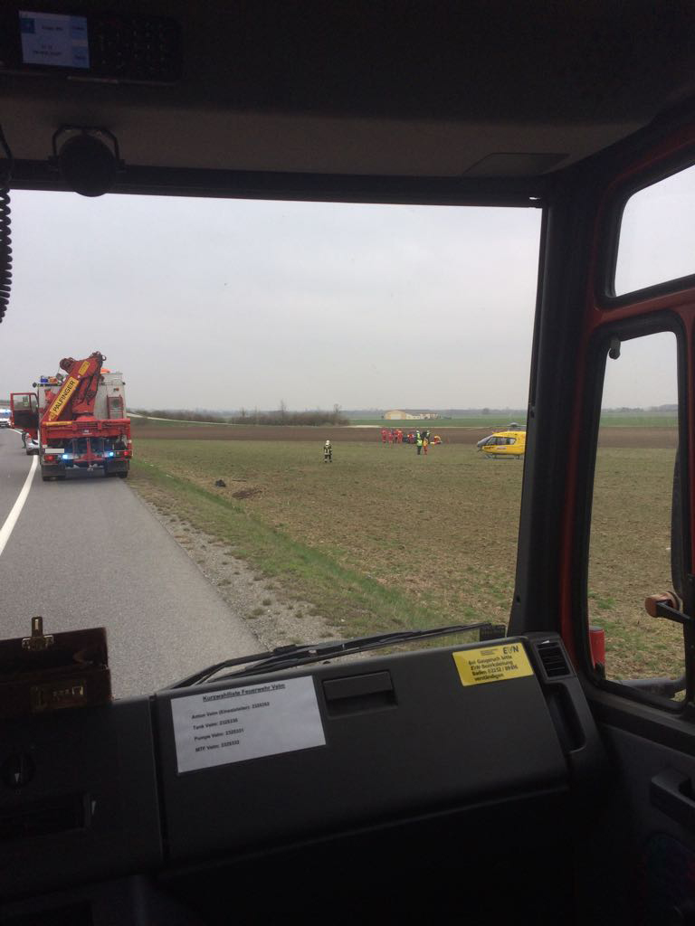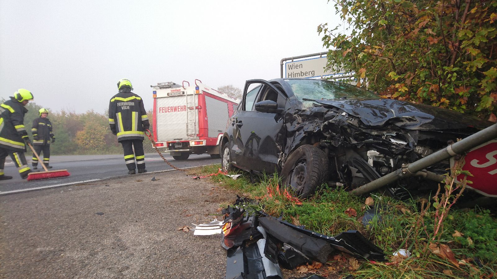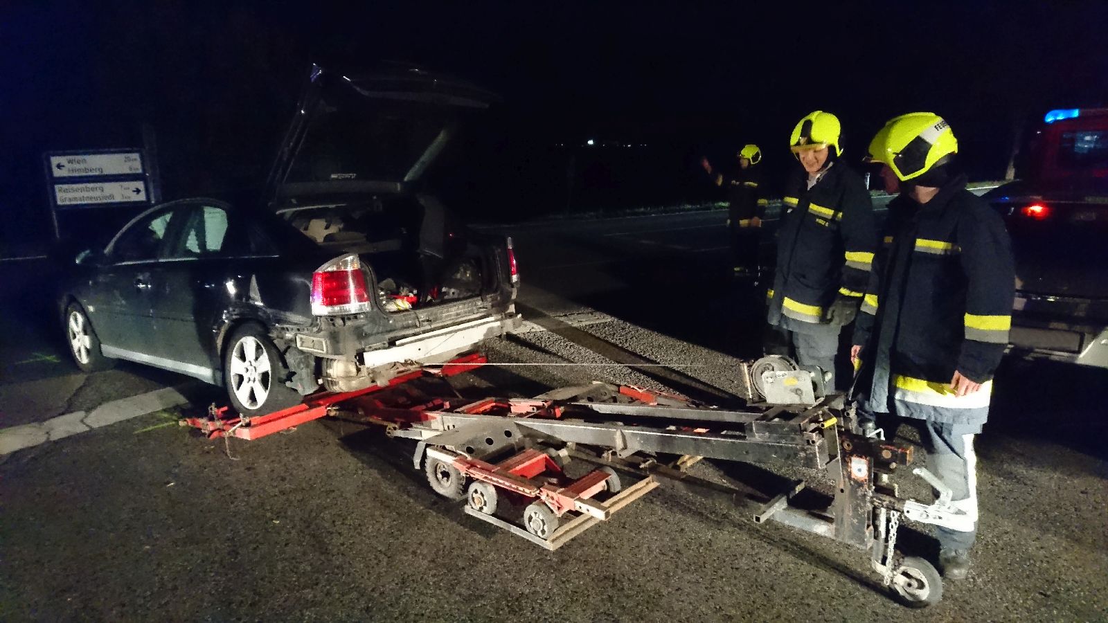 Fzg. aus Graben geborgen, zur Verwahrung nach Velm gebracht |