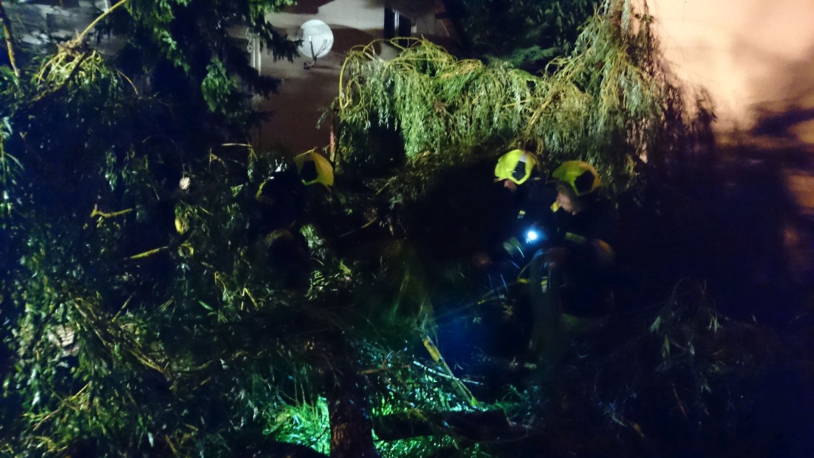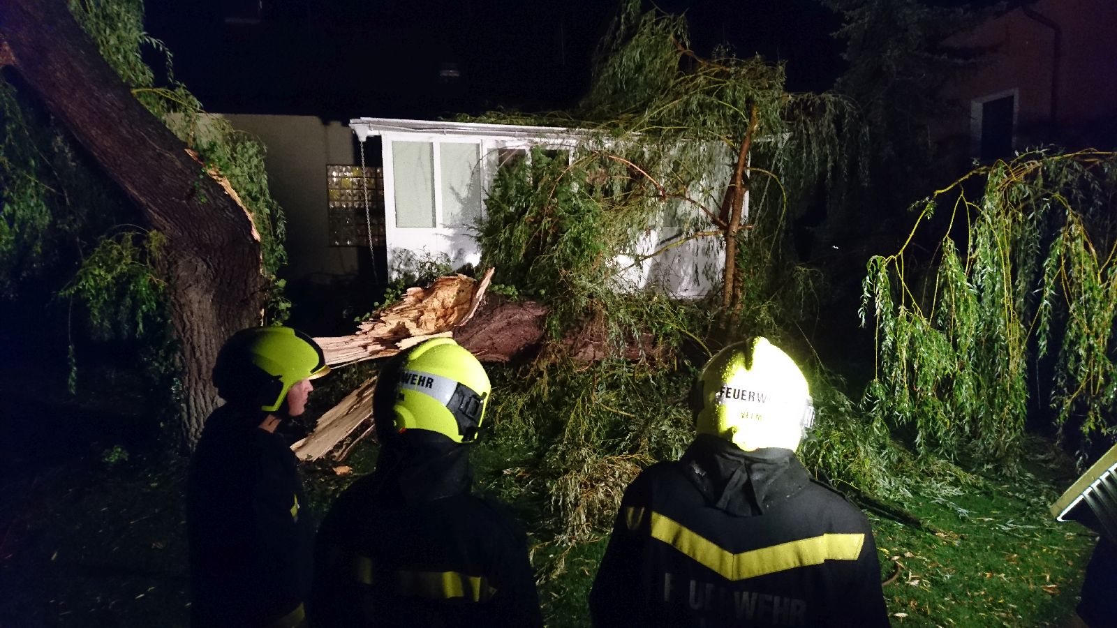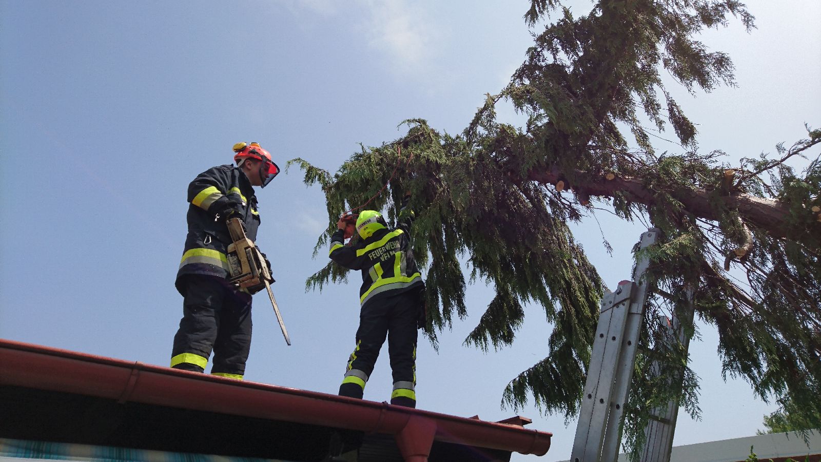 Einsturzgefahr beim Wintergarten, Äste im Gefahrenbereich geschnitten, Zugangsbereiche rund um die betroffenen Häuser freigemacht |