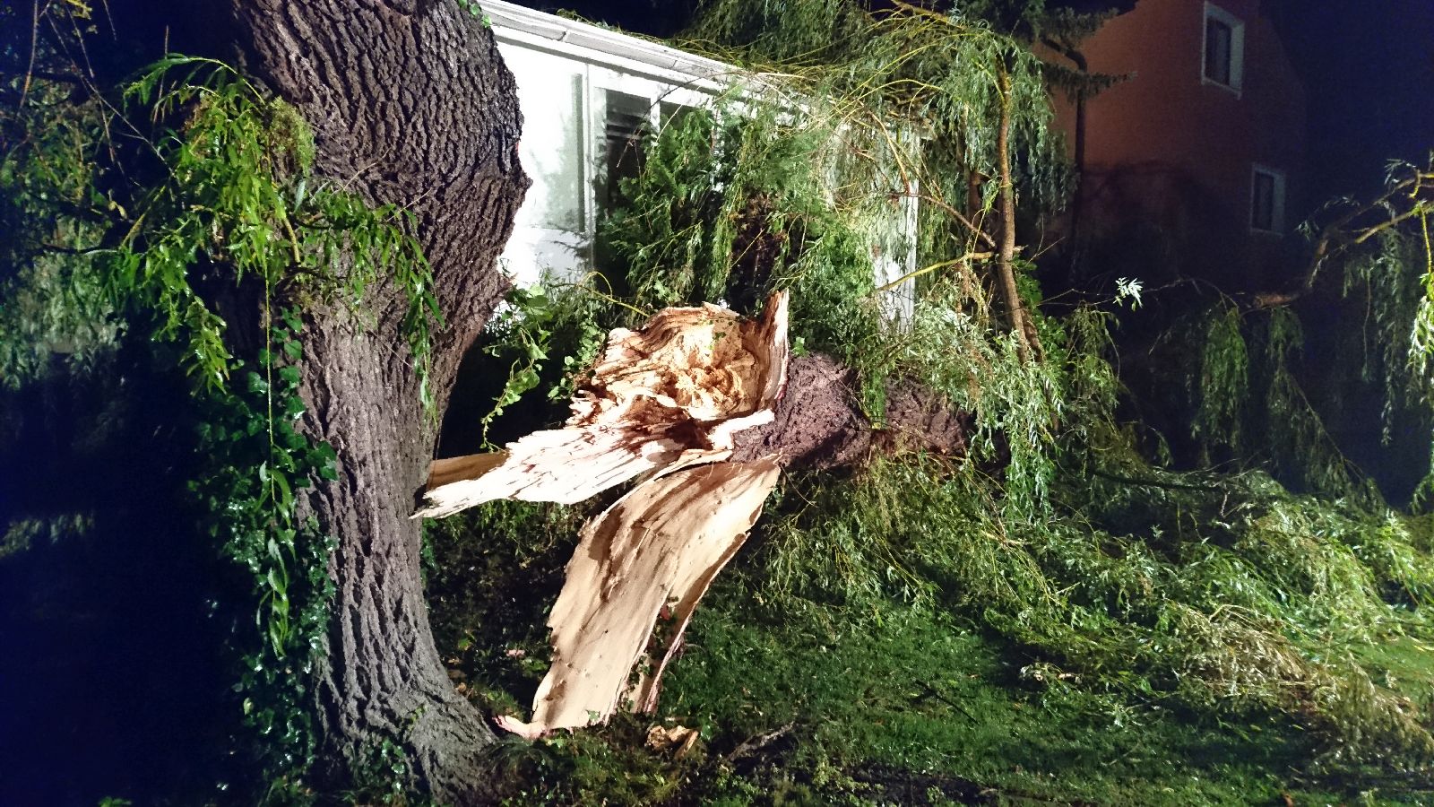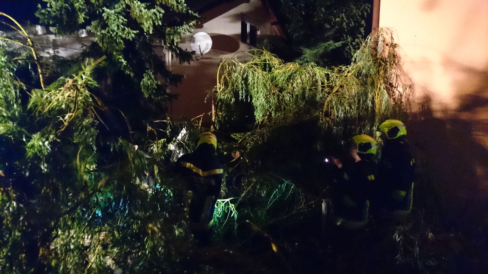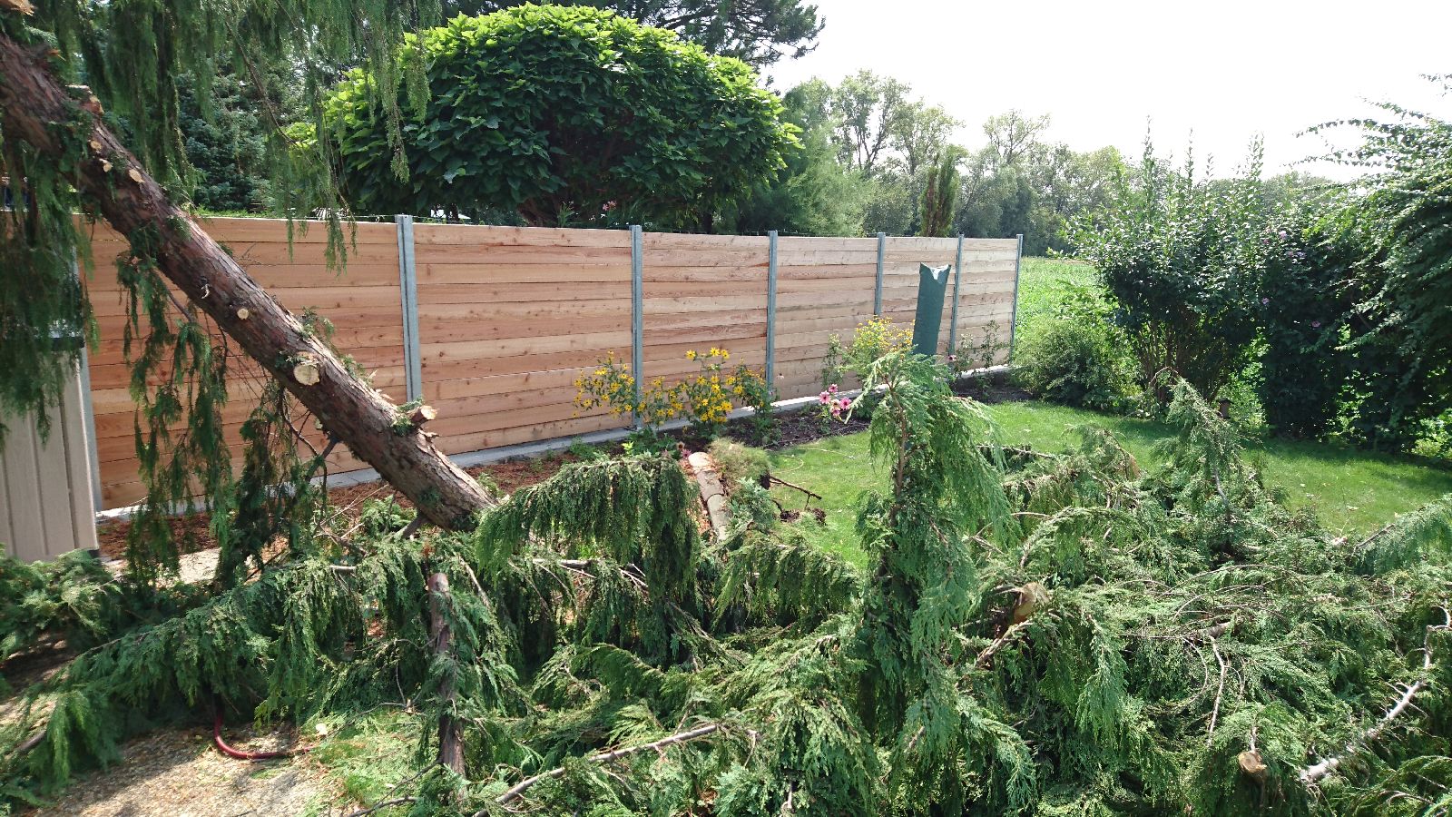 Einsturzgefahr beim Wintergarten, Äste im Gefahrenbereich geschnitten, Zugangsbereiche rund um die betroffenen Häuser freigemacht |