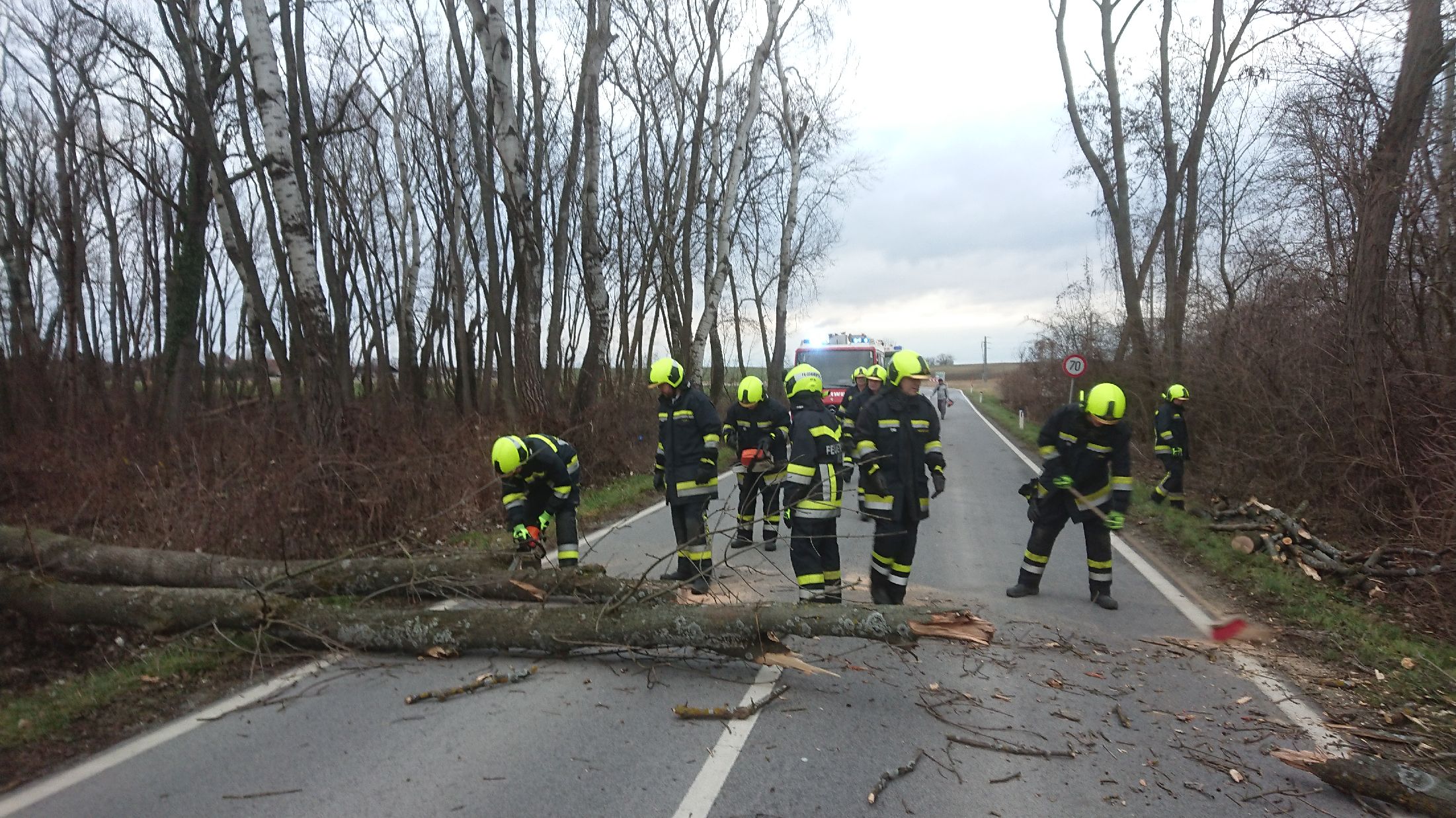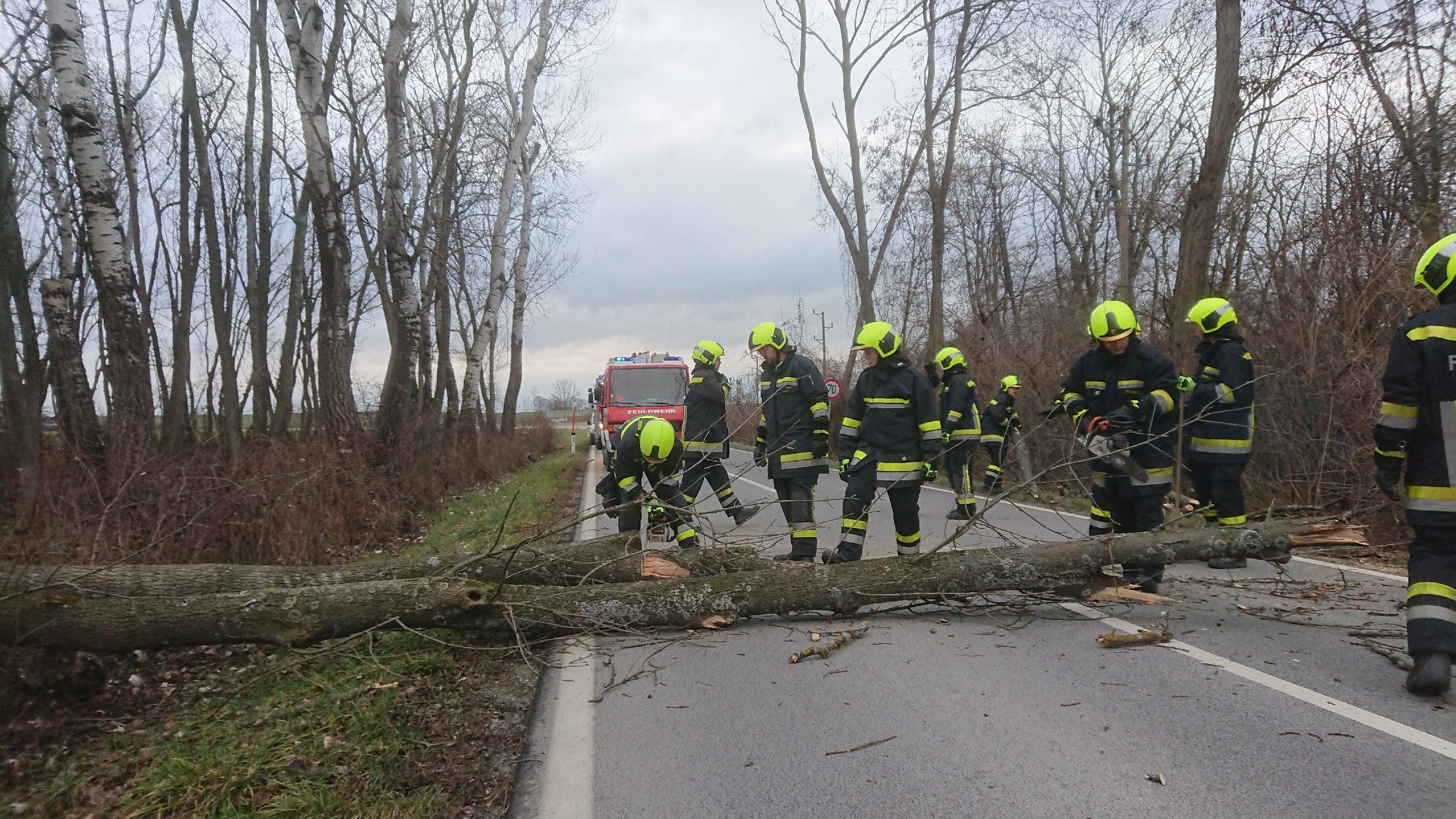 Sturmschaden- Baum versperrt Landesstraße |