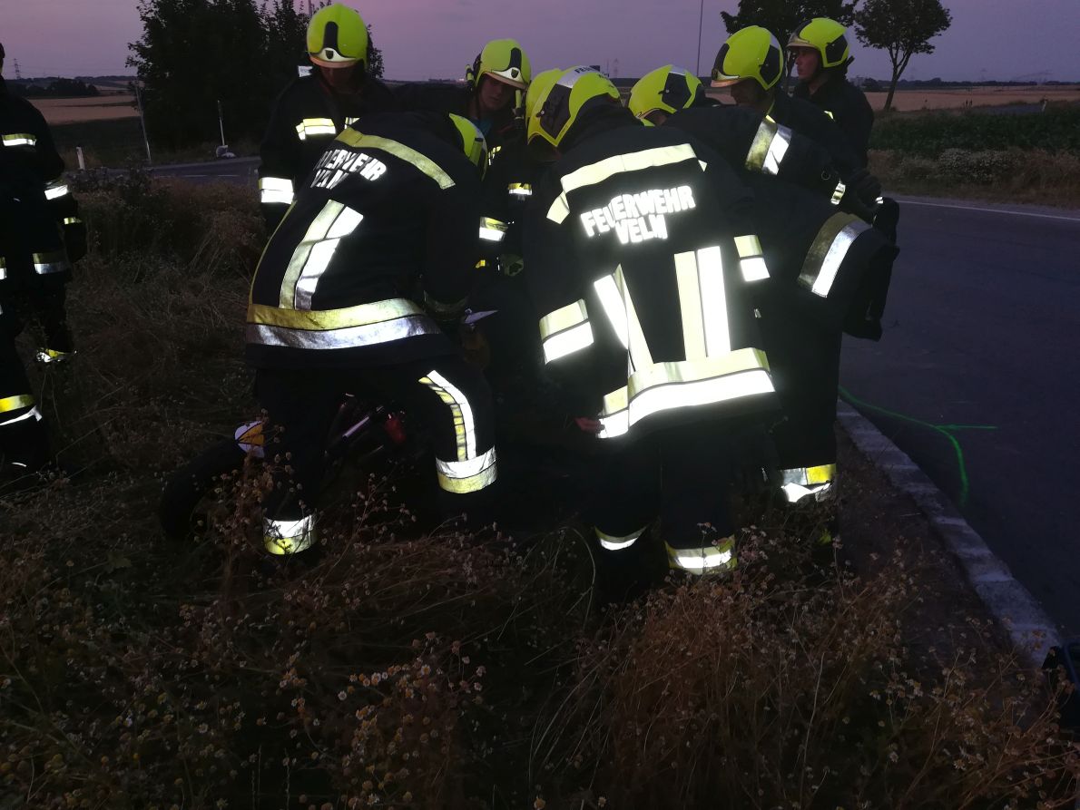 Fzg. aus Graben Kalter Gang geborgen, Fzg. verladen und zur Velmer Verwahrungsstelle gebracht, Landesstraße gereinigt |