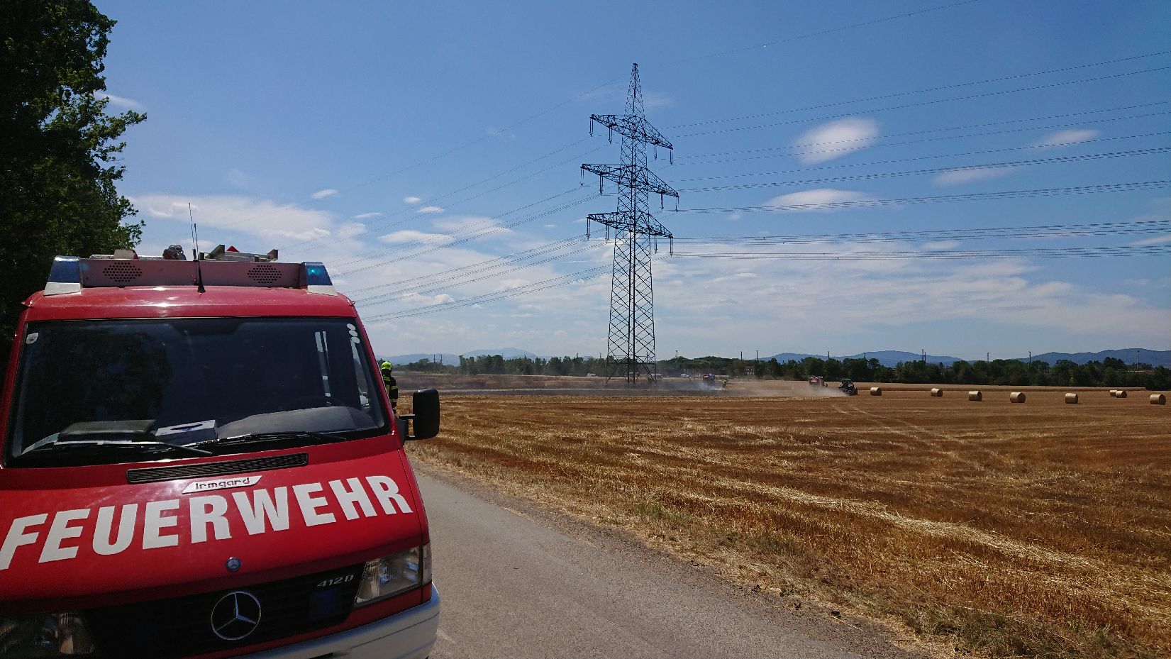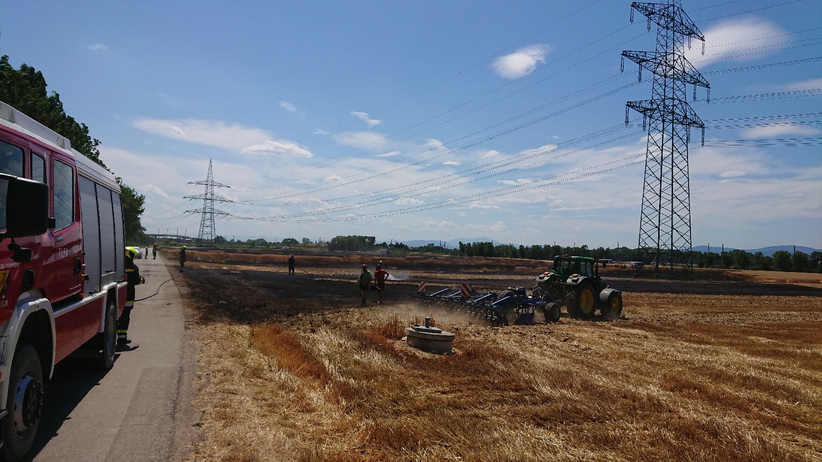 Hilfestellung FF Münchendorf durch Lösch-Unterstützung und Brandeindämmung durch „Grubbern“ |